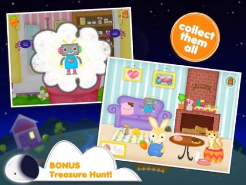 The fun doesn’t just end there. In every scene there is a hidden surprise waiting to be found. Can you spot where it is? Collect all objects to create and customize your own rabbit house.