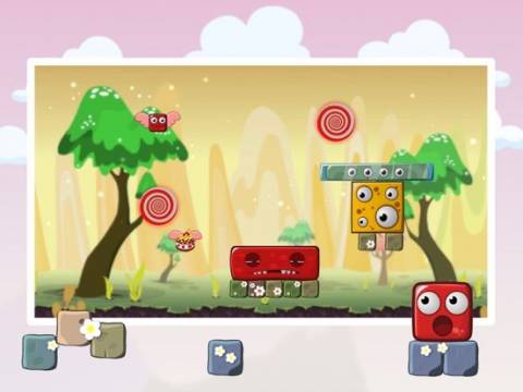 Help Junior red block find his way to Senior red block by using gravity and, blocks and various props.