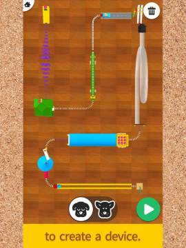 What we liked: the concept. Great variety of fun and clever 'contraptions'. 3D visuals. Easy to use. The designs can be saved for further editing. Great fun for 'Rube Goldberg Machine' style puzzles.