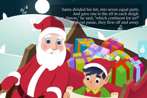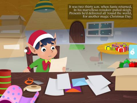 What you do with it: read the book, tap the objects on pages for simple interactions (e.g. turn the lights on/off, change the color of Santa's clothes etc). The app also contains two simple activities: matching elves to sleighs and matching shapes.