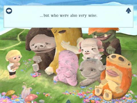 What it is: an interactive book (about 30 pages long) about a boy who finds a baby girl and tries, with the help of the wise creatures Oomorels, to find out what the girl needs to open her eyes.